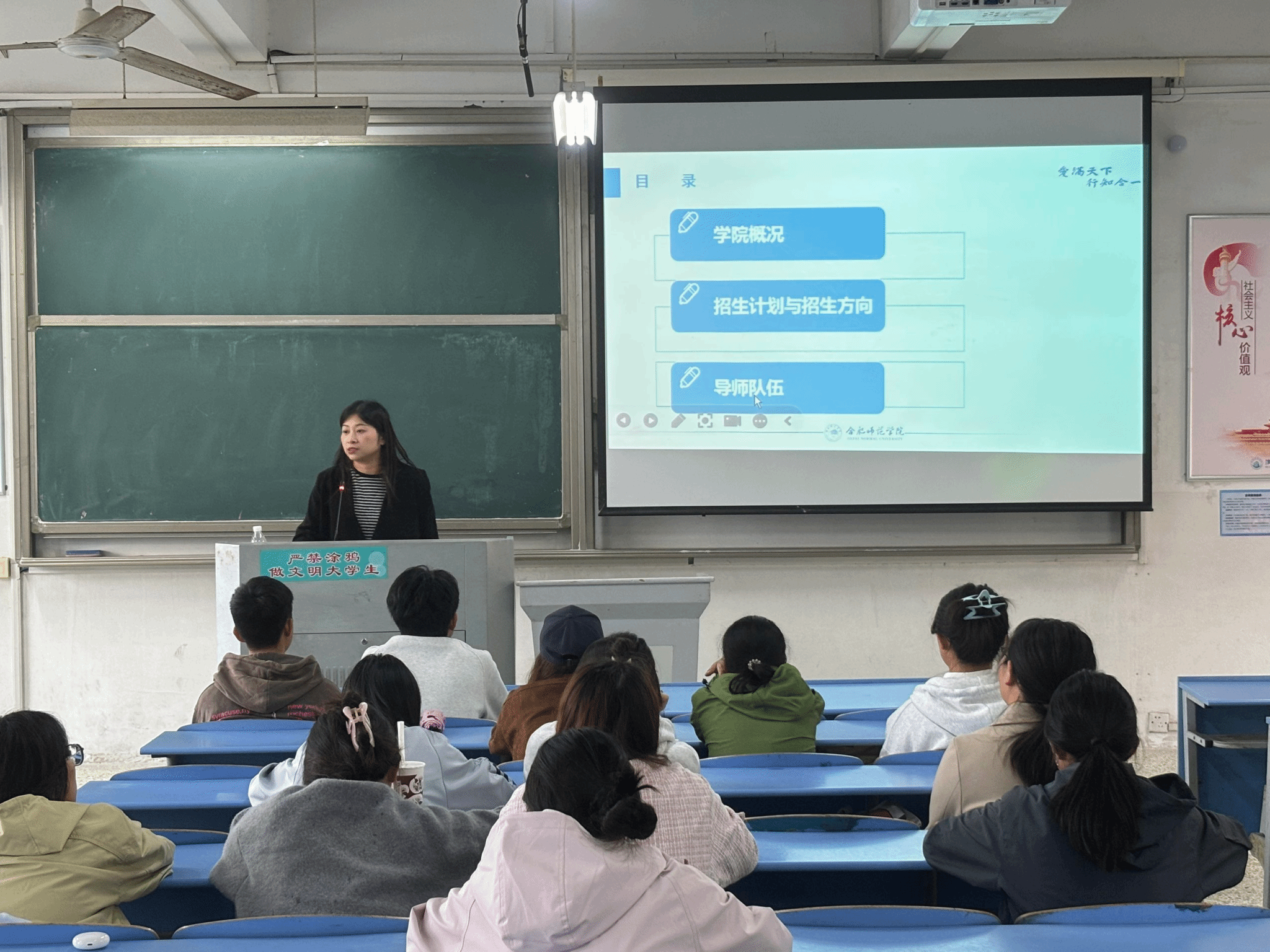 宣讲团首先介绍了学校办学底蕴与优势,并阐述英国威廉希尔英文学科实力及培养条件,然后详细解析了学院2026年硕士研究生招生信息,包含招生方向和专业、考试科目和培养特色等。在随后的互动环节中,三位老师针对“跨专业报考限制”“复试侧重”等问题逐一解答,结合学院竞赛与科研成果,鼓励同学们早定目标、科学备考。